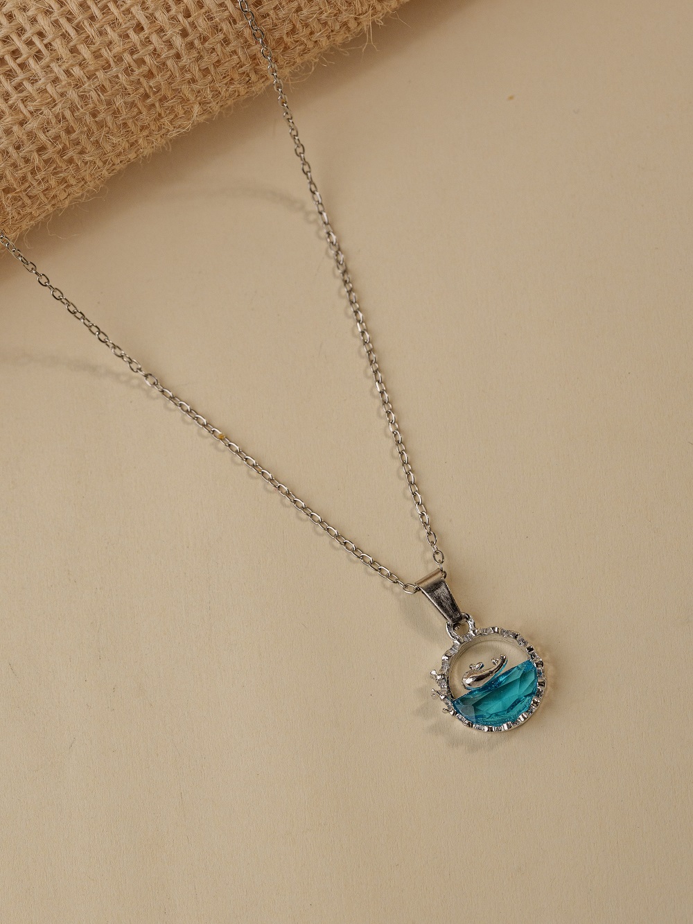 Ride the cosmic wave. Our Luna Tide Pendant pairs a striking deep blue celestial gem with a silver-tone crescent moon setting. Timeless elegance with a touch of the ethereal.